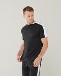 Sports fit, Self fabric colour contrast sleeve panels, Quick dry and breathable stretch fabric, Self fabric back neck tape, Raglan shoulder