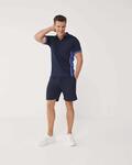 Permanent wicking fabric, Dyed to match buttons with contrast stitching, Flat knit collar, Contrast self-fabric side panels with piping